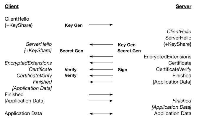 - ServerHello, EncrypetedExtensions, Certificate, CertificateVerify