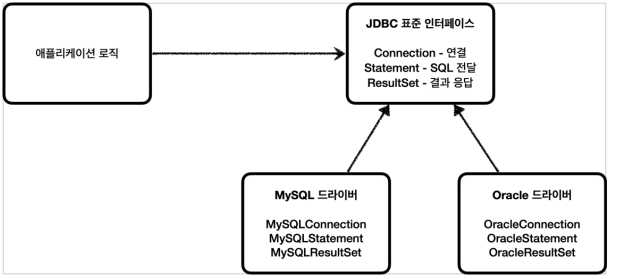 - 사용 코드는 JDBC 표준 인터페이스에 의존하고, DB를 바꾸고 싶으면 JDBC 구현 라이브러리만 변경하면 된다.