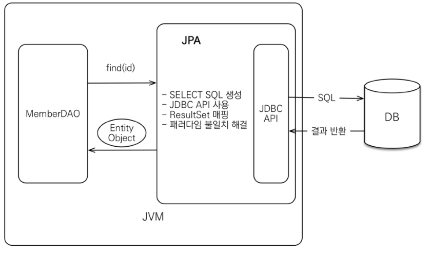 JPA는 스프링 만큼 방대하고 학습해야할 분량도 많다. 하지만 그만큼 데이터 접근 기술에서 매우 큰 생산성 향상을 경험할 수 있다. JPA를 사용하면 SQL을 JPA가 대신 작성하고 처리해준다.