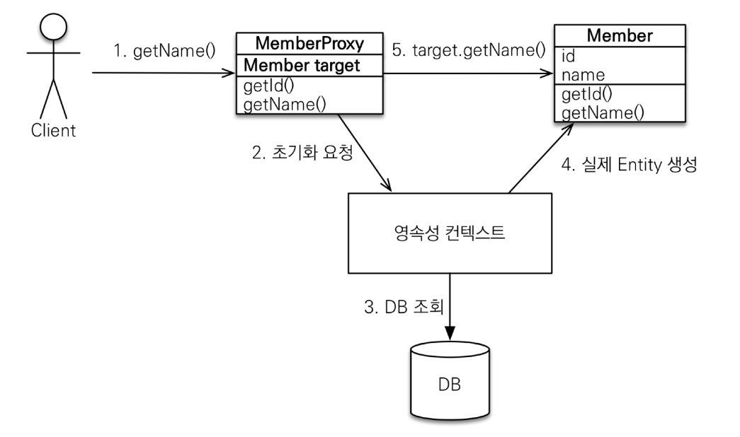 - 프록시 객체를 초기화할 때, 프록시 객체가 실제 엔티티로 바뀌는 것은 아니다. 초기화되면 프록시 객체를 통해 실제 엔티티에 접근 가능하게 되는 것이다.