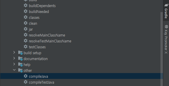 - Gradle 탭 -> -> Tasks -> other -> compileJava