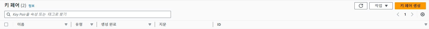 좌측 메뉴에서 [네트워크 및 보안] -> [키 페어] 메뉴로 들어간다.