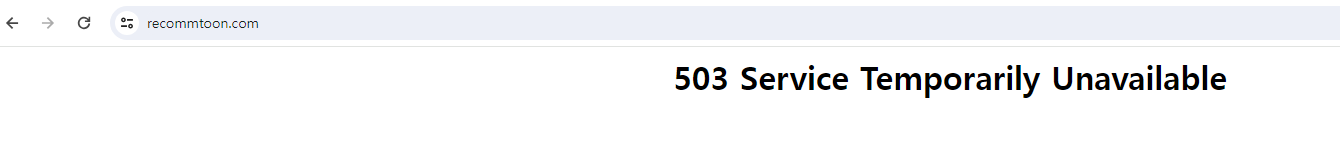 recommtoon.com에 접속해보면 503 Error가 발생하는 것을 볼 수 있다.