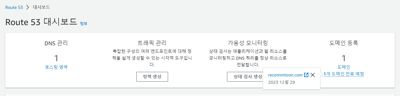 Route 53 메뉴로 들어가 직접 삭제해주어도 된다.