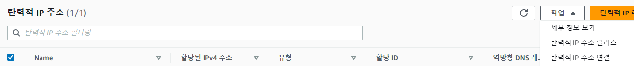 그리고 탄력적 IP 주소 릴리스를 해주면 된다.