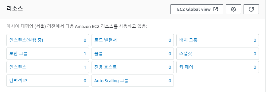 종료된 인스턴스, 기본 보안 그룹만 남아있게 되었다.